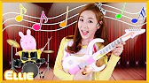 愛麗帶來粉紅色白色相間的電吉他玩具遊戲。愛麗爲大家演唱"小兔子乖乖",小豬佩奇來找愛麗玩,給她帶來麥克耳機,麥克風吹壹吹,真的聲音出來了,電吉他加上麥克風的效果真的很不錯。愛麗的行頭是不是很像搖滾歌手...