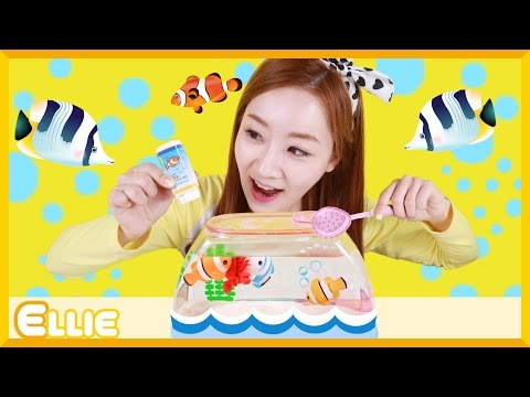今天愛麗帶來可愛魚缸,海魚玩具遊戲. 有橘黃色小魚,藍色小魚,還有紅色螃蟹,準備透明魚缸,把帶裝飾的透明板插在兩邊,然後準備水,放進魚缸裏,在蓋上蓋子,小魚就開始出聲音動起來。他們玩得開心得都忘記愛麗...